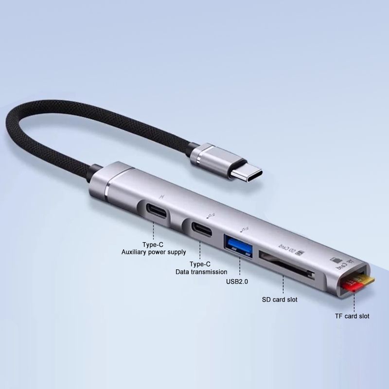 USB C Hub With 1 Port USB 2.0 ,1 Charge Type-C ,1 Data Type-c and 1 SD Card Reader and 1 TF Card Reader Hub Splitter and 0.65ft Extended Cable