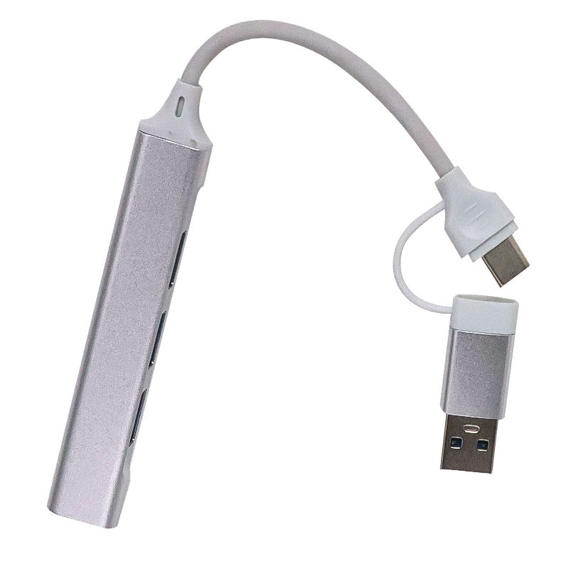 2 in 1 USB 3.0&USB C Hub With 4 Port USB 3.0 Hub Splitter and 0.65ft Extended Cable(Silver)