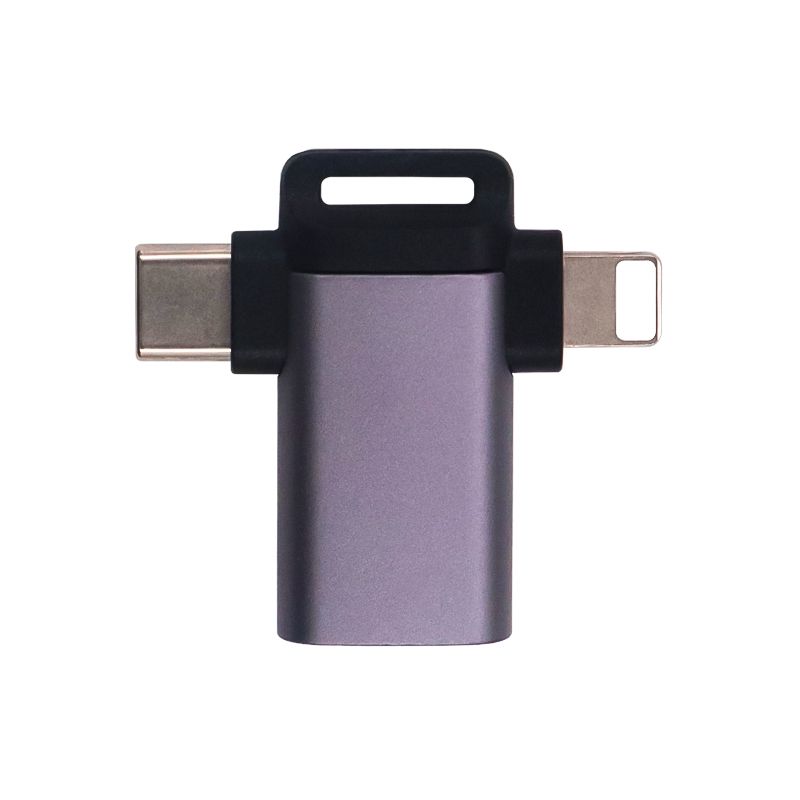 2 in 1 3.5mm Headphone Femal (Rectangle) to Lighting Male and USB C Male (Grey)(T-shaped)