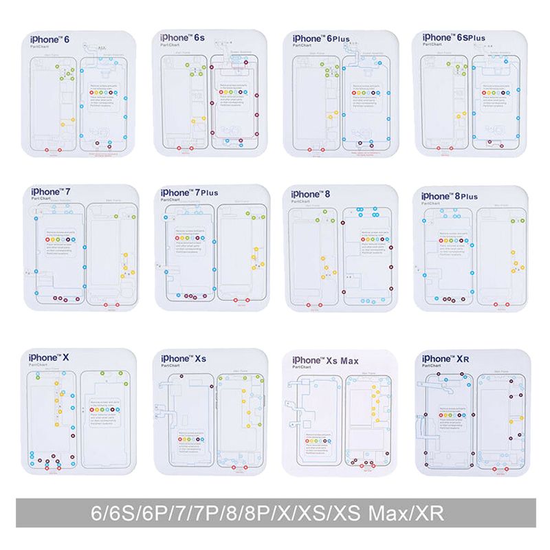12 in 1 Set Magnetic Screw Chart Mat Repair Guide Pad for iPhone 6/6P/6S/6SP/7/7P/8/8P/X/XS/XS Max/XR