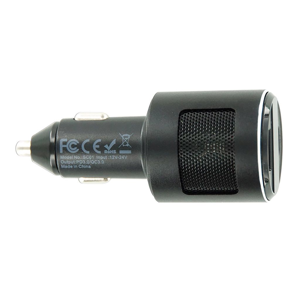 2-Port PD Type C (65W) & QC 3.0 (18W) with LED Display Car Charger Adapter for Mobile Phone - Black