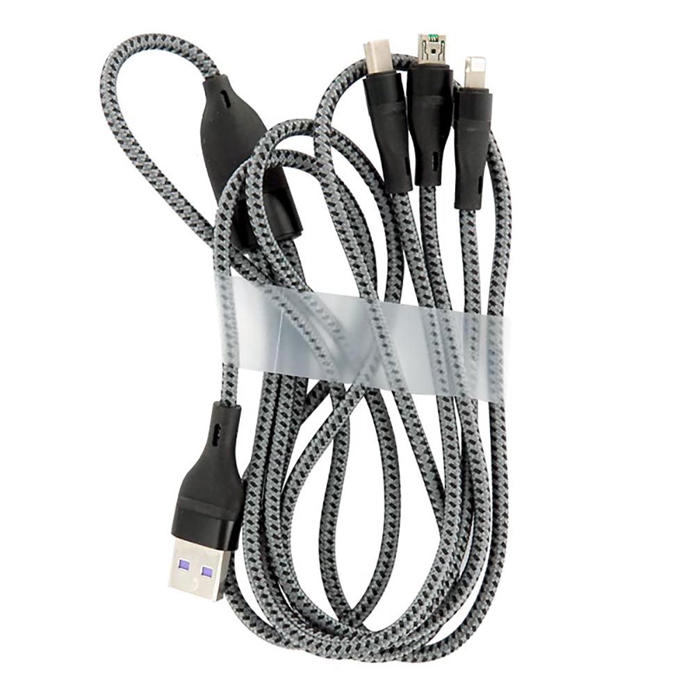3 in 1 USB Fast Charging Data Cable - Black (1.2M)
