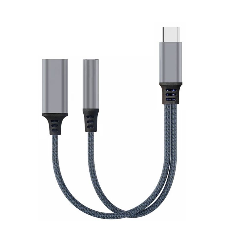 2 in 1 USB C & 3.5mm AUX Audio to USB C Cable-Blue(13.5CM)